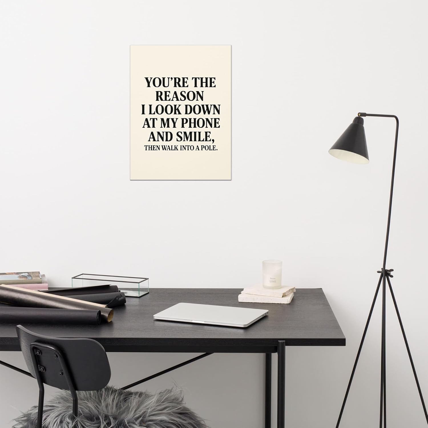 Featuring the whimsical phrase, ”You’re the reason I look down at my phone and smile, then walk into a pole,” this poster effortlessly blends laughter and affection. It’s not just a decoration; it’s a conversation starter,a nod to those little moments in life that we all can relate to. Whether it’s adding warmth to our living room, bringing a smile to our bedroom, or sparking joy in our cozy corners, this wall art has truly transformed our space into a haven of humor and love.